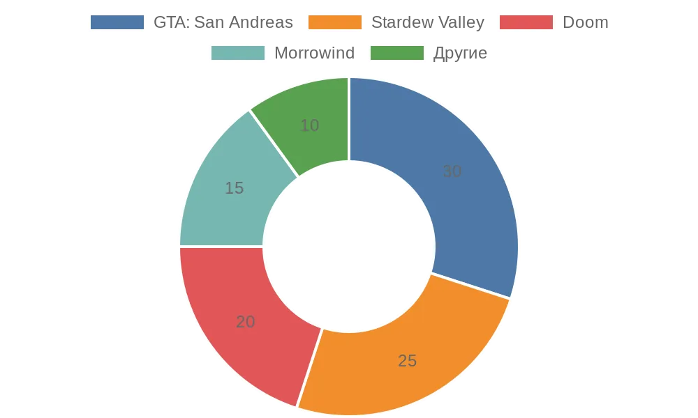 Диаграмма: распределение популярности примеров ПК-игр, перенесённых на.