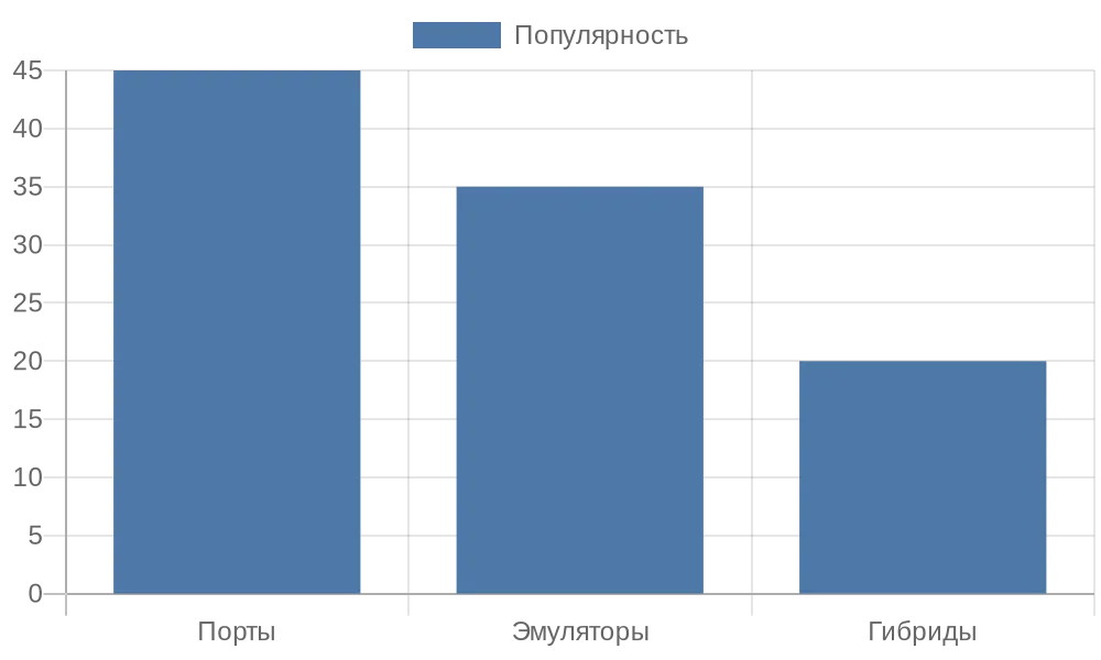 Диаграмма: сравнение популярности способов переноса ПК-игр на.